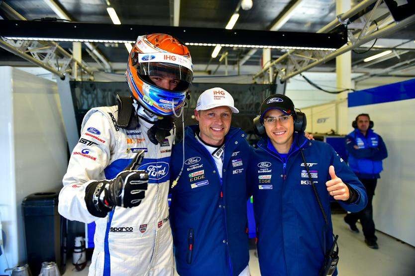 Harry Tincknell, Andy Priaulx, Pipo Derani (zleva) se radují z vítězné kvalifikace v Silverstone